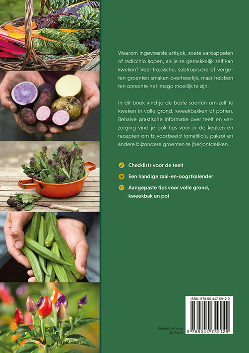 In dit praktische boek over bijzondere en exotische groenten vind je de beste soorten om zelf te kweken in volle grond, kweekbakken of potten. Behalve bruikbare informatie over teelt en verzorging vind je ook tips voor in de keuken en recepten om bijvoorb