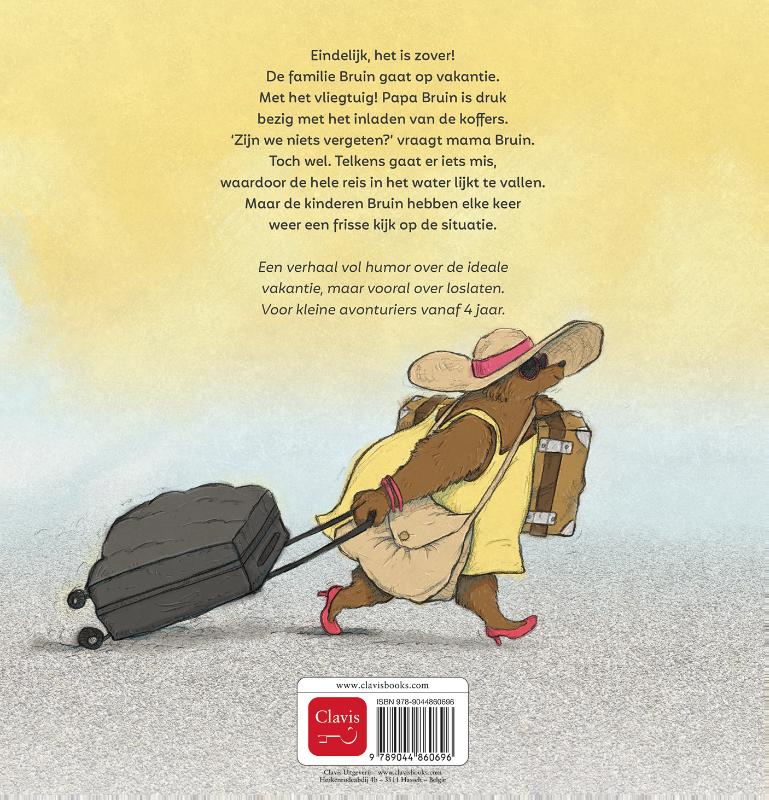 Eindelijk, het is zover! De familie Bruin gaat op vakantie.Met het vliegtuig! Papa Bruin is druk bezig met het inladen van de koffers. ‘Zijn we niets vergeten?’ vraagt mama Bruin.Toch wel. Telkens gaat er iets mis, waardoor de hele reis in het water lijkt