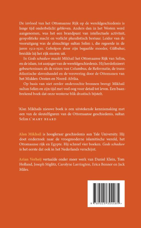 In Gods schaduw maakt Mikhail het Ottomaanse rijk van Selim I en de islam tot de spil van de globale geschiedenis. Hij herdefinieert gebeurtenissen als de reizen van Columbus, de protestantse reformatie, de trans-Atlantische slavenhandel en de verovering door de Ottomanen van het Midden-Oosten en Noord-Afrika.