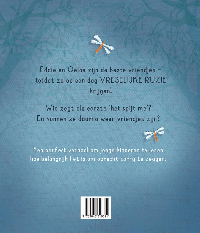 Eddie en Oeloe zijn de beste vriendjes – totdat ze op een dag VRESELIJKE RUZIE krijgen!Welk vriendje zegt als eerste ‘het spijt me’? En kunnen ze daarna weer vriendjes zijn?Een perfect verhaal om jonge kinderen te leren hoe belangrijk het is om oprecht sorry te zeggen.